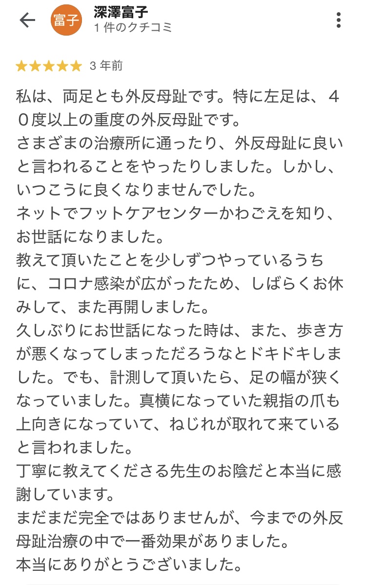 ネットでフットケアセンターかわごえを知り、お世話になりました。